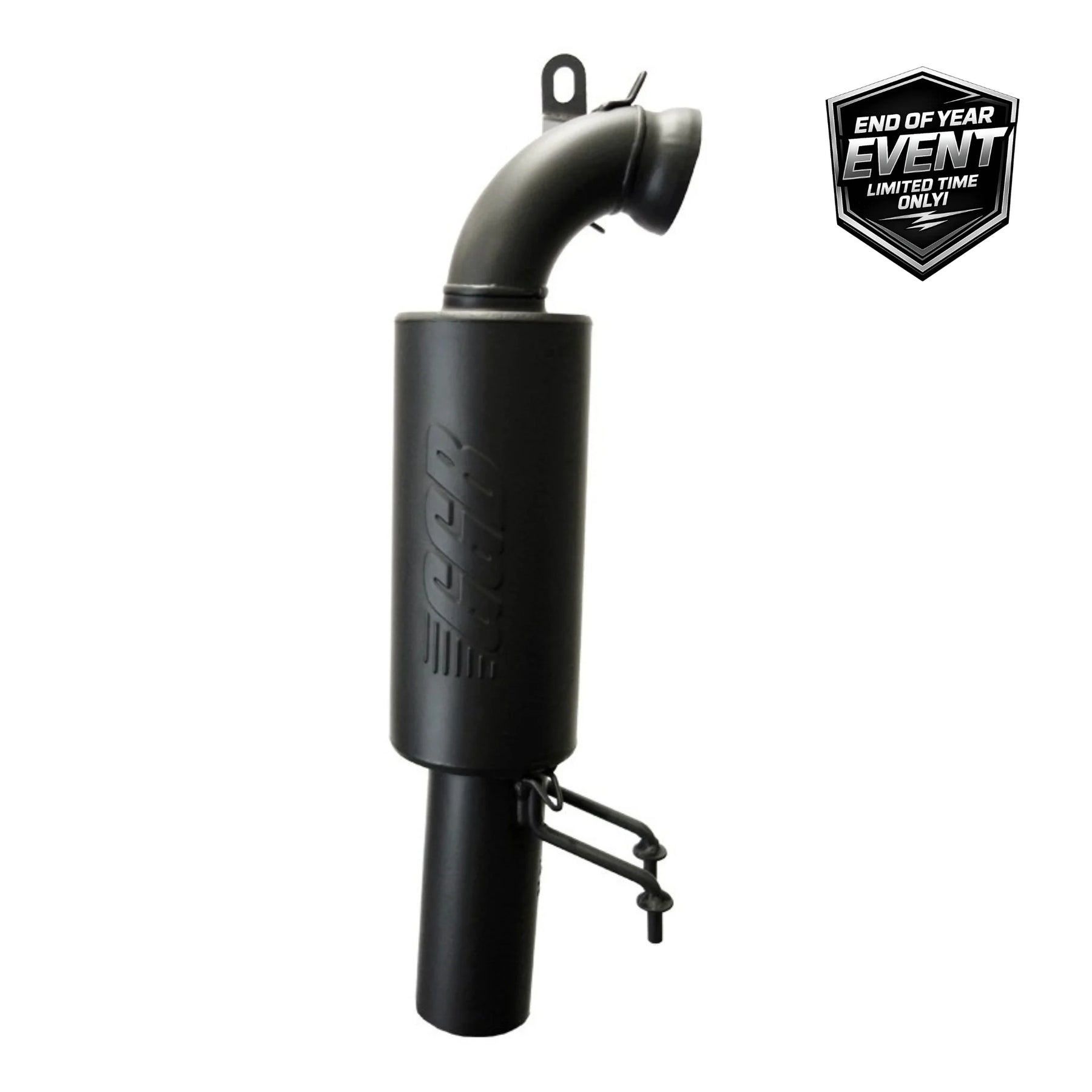 This muffler is a super lightweight, straight through flow design with an aggressive exhaust note. System fits securely in the stock location using stock mounts and is guaranteed to provide performance levels as good as or better than stock.